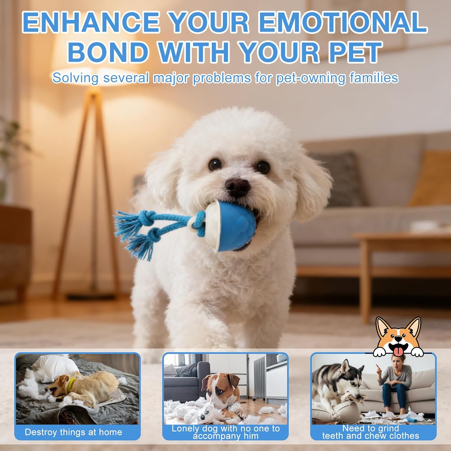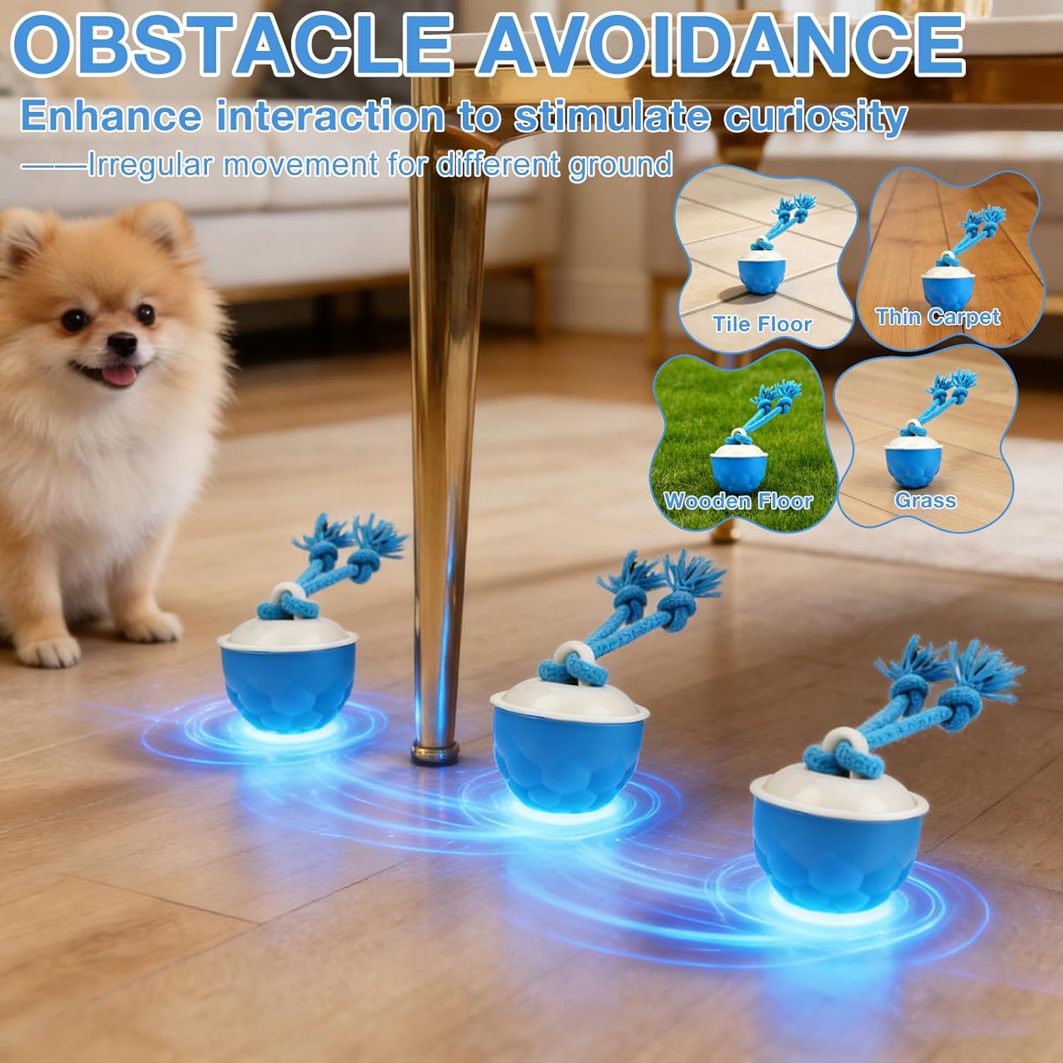 Interactive Dog Toy Ball with Smart Motion & Dental Rope Cleaner